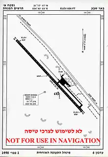 As of 1958, Arkia started to have direct flights between Be'er Sheva and Eilat using DC3 planes.[1] The airfield was not well suited for commercial planes and due to dust and poor construction Arkia stopped the flights in 1960.[2] In 1964, after covering the airstrip with a special chemical coating, Arkia was able to start flying again.