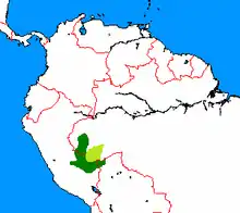 The bearded emperor tamarin's range includes territories in western Brazil and Peru[6] while also occasionally being found in Bolivia.[2] In Brazil, its range includes: the Upper Rio Jurua region in the southwest of Amazonas state and to the east of Acre state.[6] In Peru, it inhabits the upper Rio Ucayali and Urubamba basins in the Loreto province and the upper Rio Madre de Dios basin in Madre de Dios; it is sometimes seen in the bordering Cusco Department.[6]