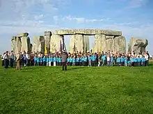 The uniform is a departure from the uniform worn before 2001 which did not have as wide a range of options and instead focused on a grey, long sleeved sweatshirt and neckerchief which could be either in the group's colours or turquoise in colour.[83] The transition to a blue jumper was well supported by members when consulted in 2000 and many of the suggestions were adopted, with only the proposed activity skirts, canvas belt and ski hat finding disfavour and not being adopted.[84][85]