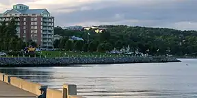 The developed area of Bedford’s shore line is mainly long the Bedford Bay portion of the basin. It consists of a public waterfront boardwalk through a 1 km[11] portion of DeWolf Park and follows along to Lions Park and along Shore Drive. Its eastern shore consists of a "blast buffer zone" that surrounds Canadian Forces Ammunition Depot Bedford; this is the Royal Canadian Navy’s weapons magazine for its Atlantic fleet.