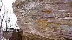 - ↑ Sandstone beds in the Bedford Shale in Kentucky are mostly made of orthoquartzite,[21] a sandstone composed of usually well-rounded quartz grains cemented by silica and containing few trace minerals.[22]
