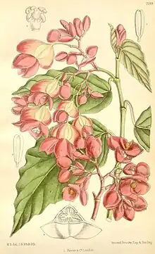 Begonia radicans, the shrimp begonia, is a species of flowering plant in the genus Begonia, native to southeastern and southern Brazil.[2] It has gained the Royal Horticultural Society's Award of Garden Merit.[3]