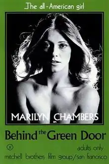 Behind the Green Door is a 1972 American feature-length pornographic film, widely considered one of the genre's "classic" pictures and one of the films that ushered in The Golden Age of Porn (1969–1984). Featuring Marilyn Chambers, who became a mainstream celebrity, it was one of the first hardcore films widely released in the United States and the first feature-length film directed by the Mitchell brothers.[2] It was adapted from an anonymous short story of the same title, which was circulated by means of numerous carbon copies. The story's title makes reference to the 1956 hit song "Green Door", whose lyrics describe being denied entry to a raucous nightclub with a green door.[3] Though she plays the film's central character, Chambers does not have a single word of dialogue in the entire film. The film is possibly the first U.S. feature-length heterosexual hardcore film to include an interracial sex scene.[4]