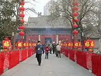 The Temple of the Eastern Peak in Beijing (simplified Chinese: 北京东岳庙; traditional Chinese: 北京東嶽廟; pinyin: Běijīng Dōngyuè Miào) is a Taoist temple in the Chaowai area, Chaoyang District, Beijing, China. The temple is dedicated to the Great Deity of the Eastern Peak (simplified Chinese: 东岳大帝; traditional Chinese: 東嶽大帝; pinyin: Dōngyuèdàdì). "Eastern Peak" is the cosmological name of Mount Tai, the easternmost and holiest of the Five Sacred Mountains of China. Founded during the Yuan dynasty, the Eastern Peak Temple is the largest temple of Zhengyi Taoism in Beijing and protected as a national cultural spot. The temple also hosts the Beijing Folk Customs Museum.