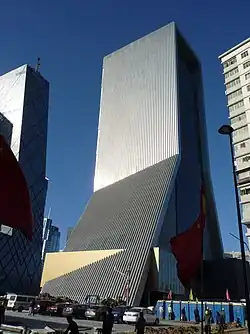 The Television Cultural Center (TVCC; Chinese: 中央电视台电视文化中心) is a 34-story skyscraper on East Third Ring Road, Guanghua Road in the Central Business District (CBD) of Beijing, China. It was due to open in mid-May 2009 containing a hotel, a theater, and several studios. It finally opened on 16 May 2012 due to a major fire.[1]