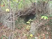 There were originally seven natural pools and springs that existed within the massive property.[16] Peale took advantage of these natural pools and utilized them to improve his massive garden. He hollowed out the source of the spring into an artificial cave, which he then lined with masonry. This spring fed a greenhouse with a glass ceiling. Unfortunately only two of the original seven pools remain today. The other five have either disappeared due to natural reasons or have been diverted to another location. There used to exist a spring within the "Summer House" until that was diverted along with two pools that existed by the kitchen that fed into a well and one that existed near the lower half of the stable. These have since disappeared and it is unknown exactly how the last two disappeared.[20] To the southeast was a pool with a ten-foot fountain that was fed by pipes from the spring. Next to the pool was a garden shed onto which Peale painted a "gate" to disguise it. On the "gate" were symbols and figures representing Congress, America, Truth, Wisdom, Temperance, and Mars, the Roman God of war.[21] The ruins of Peale's cave and greenhouse still stand. The cave is now underneath the stump of a coffee tree, but the deteriorating masonry is still visible.[19] The greenhouse's walls are to the west, and are mostly overgrown with brush and ivy while the location of Peale's pond has been paved over by a driveway.