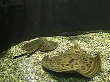 In 2005, the aquarium had 60 exhibits with a total tank volume of 32,000 U.S. gallons (120,000 L; 27,000 imp gal),[3] and was home to over 1,500 fish of 146 species.[2] The aquarium largely featured freshwater species native to the Great Lakes region, but also had salt-water species from around the world. Currently the aquarium over 200 species of aquatic animals.