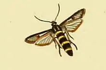 - ↑ "Bembecia megillaeformis (Hübner, 1813)". 2.6.2. Fauna Europaea. August 29, 2013. Archived from the original on September 24, 2015. Retrieved January 5, 2014.