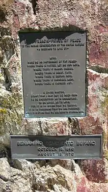 Beniamino "Bene" Bufano (October 15, 1890  August 18, 1970) was an Italian American sculptor, best known for his large-scale monuments representing peace and his modernist work often featured smoothly rounded animals and relatively simple shapes. He worked in ceramics, stone, stainless steel, and mosaic, and sometimes combined two or more of these media, and some of his works are cast stone replicas. He had a variety of names used and sometimes went by the name Benvenuto Bufano because he admired Benvenuto Cellini. His youthful nickname was "Bene", which was often anglicized into "Benny". He lived in Northern California for much of his career.