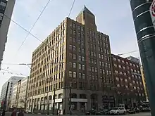 | Commodore Building[2] | 317 Adelaide Ave at Peter St, Toronto | 1929 | Slim penthouse to hide a roof water tank. | ![]() |