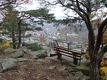 The Bergstein is described as a rock group and lies at an elevation of c. 354 m (1,161 ft) at the eastern end of the Palatinate Forest and is part of the Weinbiet massif. The Bergstein lies above the Speyerbach valley and has a view of the valley and the town of Neustadt. It is accessible and is protected by railings. It is only accessible on footpaths.