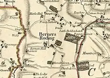 An alternative traditional name for the village, manor, and previous parish, was 'Berners Roothing'. It was in the Hundred of Dunmow. The parish church was appropriated to the monastery of St Leonard, at Bow in Middlesex. The daughter of Sir James Berners, Juliana Berners of the Order of Saint Benedict, writer on heraldry, hawking and hunting, and prioress of the Priory of St Mary of Sopwell, was born in the parish.[4][5]