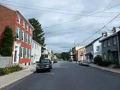 Main Street was laid out in 1819 and has numerous buildings dating back to the nineteenth century, including the Cyrus G. Blatt home (501-503 N. Main), the Eagle Hotel (301 N. Main) and the Joseph B. Conrad home (219 N. Main).[9] Main Street is also the location of both churches: St. Thomas's UCC, and Evangelical Lutheran Friedens Church. The churches are located across the street from each other.