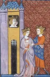 King Philip marries Countess Bertrada, with Queen Bertha imprisoned in a castle