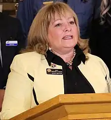 In the Senate, Martinez Humenik served as chair of the Health & Human Services committee and Local Government committee, and was vice chair of the Joint Technology Committee and Statutory Revision Committee.[7] Martinez Humenik is considered fairly moderate by the standards of Colorado Republicans;[6] in 2015, Martinez Humenik broke with the Republicans to defeat a key anti-abortion bill, joining Democrats in the Senate Health and Human Services Committee in voting against the legislation.[8] The vote earned Martinez Humerik the enmity of Colorado anti-abortion activists.[9]