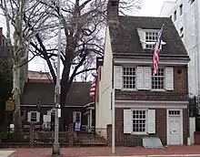 Although the house is one of the most visited tourist sites in Philadelphia,[5] the claim that Ross once lived there, and that she designed and sewed the first American flag, sometimes called the Betsy Ross flag, are considered false by most historians.[6][7]