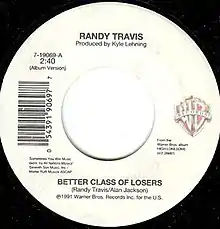 "Better Class of Losers" is a song co-written and recorded by American country music singer Randy Travis. It was released in December 1991 as the third single from his album High Lonesome. It peaked at number 2 in both the United States and Canada. Travis co-wrote this song with Alan Jackson. Travis' performance earned him the Grammy nomination for Best Male Country Vocal Performance, his fifth nomination in that category.