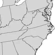 After it was first discovered in 1914, the tree was not seen again and was thought to be extinct until 1975, when some individuals were found.[6] These 18 adult trees and 23 saplings and seedlings were in a forest along the degraded banks of Cressy Creek on Smyth County, Virginia.[6] The tree was federally listed as an endangered species[3] and conservation efforts began.[5] Many seedlings were sprouted in greenhouses and planted in the forest.[6] By 1995, there were 20 populations and it had been downlisted to threatened status in December 1994.[9][4][6] The tree was propagated in order to discourage collectors from taking wild specimens, or vandals from destroying them.[6] A recent count estimated 961 individuals in the wild as of 2006.[5] Eight of these are in the original creekside population.[10] The species will not be removed from the endangered species list yet because it has not been observed reproducing sexually, and naturally, more than once.[6] The expansion of its range is limited because the area is surrounded by agricultural land, but the territory on which the tree occurs is not immediately threatened.[6] NatureServe considers the species Critically Imperiled.[10]