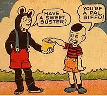 - ↑ "[presumably Biffo the Bear]". The Beano. No. 1396. DC Thomson. 19 April 1969.