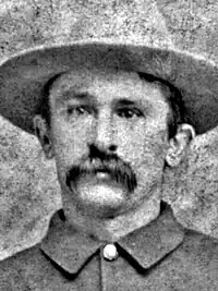 In the spring of 1884, Pat Garrett came to the Texas Panhandle as newly appointed captain of the Texas Ranger Division.[2][3] A range war had been brewing in the state as livestock theft was common. He was tasked by the Texas State government and by the big ranchers of the Canadian River with organizing a company of Texas Rangers to put a stop to the rampant rustling and re-branding of cattle. He set up his headquarters at the LS Ranch and petitioned the government for official papers so that he could go to work. In the following months, he and his men, known locally as the 'LS Rangers' were successful in policing the area and preventing the same kind of feud that resulted in New Mexico's Lincoln County War just eight years earlier. In the spring of 1885, the rangers were disbanded and Garrett returned to New Mexico. The rest of Garrett's men continued to work for the LS Ranch as rangers, but since they were no longer officially Texas Rangers, their hard-drinking and arrogant ways began to stir local resentment. Ex- Texas Ranger Ed King[3] was particularly troublesome, as he was known to be especially arrogant, quarrelsome when drunk and quick to draw his gun at any excuse. In Tascosa, the rangers became known as 'barroom gladiators'.[4]