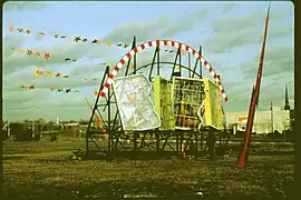 [2] The installation created controversy since part of the imagery employed neon lighting and was visible only after dark.