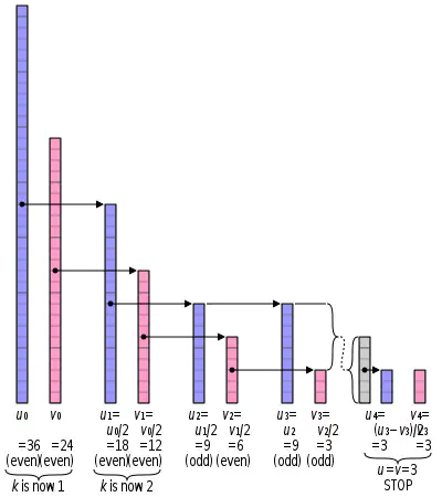 - gcd(u, v) = gcd(|u − v|, min(u, v)), if u and v are both odd.