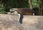 Ghana has a vast array of fauna and they are of great significance, as some of Ghana's fauna have attained conservation status because of the current rate of decline in their number and distribution.[4] The fauna of the Ghanaian terrestrial ecosystem, comprise a diverse array of species including several of conservation concern.[4] Ghanaian records show that there is as many as 221 species of amphibians and reptiles, 724 species of birds, 225 mammalian species inhabiting Ghana; with 93 recorded to be inhabiting the Ghanaian savanna ecological zone.[4] As with floral diversity, prime locations for faunal diversity is located in the Ghanaian high forest uplands; accounting for 83% of the total number of butterfly species recorded in Ghana, where canopy stratification and micro-climatic differentiation have provided habitats and niches for specific faunal organisms.[4]