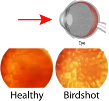 - ↑ "Birdshot Retinopathy: Background, Pathophysiology, Epidemiology". 2017-05-02.