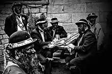 Chloe Metcalfe (2013)[15] and Richard Carlin (2008) question the link between the American minstrel shows into Victorian England in the late 1830s and the morris.[16] By the early 20th century, border morris dancing was referred to colloquially by some as "nigger dancing" or "going niggering".[17][18] Some view this as direct evidence of the link with minstrel shows.[19]