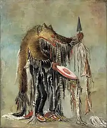 Horses revolutionised life on the Great Plains and soon came to be regarded as a measure of wealth. Warriors regularly raided other tribes for their best horses. Horses were generally used as universal standards of barter. Medicine men were paid for cures and healing with horses. Those who designed shields or war bonnets were also paid in horses.[18] The men gave horses to those who were owed gifts as well as to the needy. An individual's wealth rose with the number of horses accumulated, but a man did not keep an abundance of them. The individual's prestige and status was judged by the number of horses that he could give away. For the Indians who lived on the Plains, the principal value of property was to share it with others.[19]