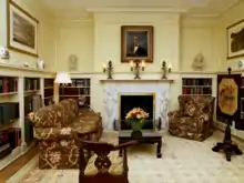 The head-of-state suite comprises the apartments designated for use by the principal resident. It consists of a sitting room, two bedrooms with adjoining dressing rooms, two bathrooms, and a powder room.[31] It is furnished with 18th-century English antiques, which were valued at more than $1 million in 1987.[32]