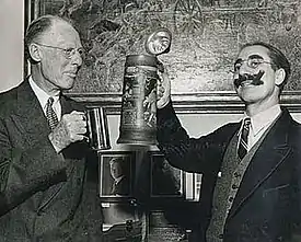 Blue Ribbon Town is a comedy-variety radio series starring Groucho Marx, sponsored by Pabst Blue Ribbon Beer, and broadcast on CBS from March 27, 1943, to August 5, 1944. The 30-minute series was heard Saturday nights at 10:30 p.m. until October when it moved to 8 p.m.[1] It was also known as Pabst Blue Ribbon Town.