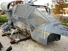 The second, s/n 1075 (ex-N52BT[4]), was scrapped during 1988.[3] There was a third static display model built for close-up shots with the actors; it was stored outside and after deterioration was scrapped by 2009.[3] The bolt-on cockpit of the original helicopter used to be visible on the backlot tour of MGM Studios in Florida. It has not been present in the 'bone yard' since at least 2005.[5]