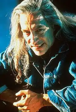 It is later revealed that Bob is, in fact, possessing Leland, and has been "possessing" him ever since Leland first met him as a child at his grandfather's house.[7] Under Bob's influence, Leland sexually abused his own daughter for years, and finally murdered her. Leland is also under Bob's control when he murders Leland's niece Maddy Ferguson (Lee), who looks just like Laura.[8] Upon learning the truth, Cooper lures Bob into a trap by tricking Leland into allowing himself to be questioned. Under interrogation, Bob takes control and taunts Cooper before forcing Leland to bash his head repeatedly into the wall, sustaining fatal injuries.[9] In his dying breaths, Leland states when he was a child he saw Bob in a dream and invited him inside, before stating that he never knew when Bob was in control of his body. After Leland dies, Cooper engages in a philosophical debate with Sheriff Harry Truman (Michael Ontkean) and Albert Rosenfield (Miguel Ferrer) over how real Bob was, and whether or not Bob was in fact a physical incarnation of Leland's personal demons.[10] Although the men cannot agree on a unifying idea, they do come to the conclusion that Bob is a manifestation of "the evil that men do".[11]