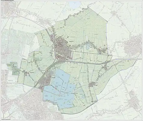 Bodegraven-Reeuwijk (Dutch pronunciation: [ˌboːdəɣraːvə(n) ˈreːuʋɛik]) is a municipality in the western Netherlands, in the province of South Holland with a population of 35,278 in 2021. It was established by a merger of Bodegraven and Reeuwijk on 1 January 2011. The municipality covers 88.64 km2 (34.22 sq mi) of which 13.26 km2 (5.12 sq mi) is water.