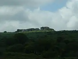 Dramatic granite tors rise from the rolling moorland: the best known are Brown Willy, the highest point in Cornwall at 417 m (1,368 ft),[6] and Rough Tor at 400 m (1,300 ft). To the south-east Kilmar Tor and Caradon Hill are the most prominent hills.[7] Considerable areas of the moor are poorly drained and form marshes (in hot summers these can dry out). The rest of the moor is mostly rough pasture or covered with heather and other low vegetation.[8]