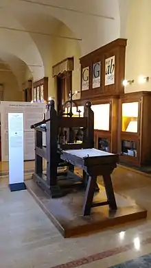 The museum's treasure is composed of thousands of volumes, a rich correspondence and various typographic tools of Bodoni's Printing Office.[2] The collection dedicated to the history of the book, comprising both manuscripts and the printed editions, constitutes one of the museum's most prestigious sections.