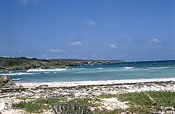 The Swan Islands (Spanish: Islas Santanilla or Islas del Cisne, named Islas de las Pozas by Christopher Columbus in 1502) is a chain of three islands located in the northwestern Caribbean Sea, approximately 153 km (95 mi) northeast of the eastern coast of Honduras,[1] with a combined land area of 3.1 km2 (1.2 sq mi).[2]