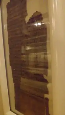 The Book of the Dead in the Royal Ontario Museum is an iconic object in their collection. Purchased in Egypt by Charles T. Currelly, this Book is a seven-metre-long scroll that was found in the tomb of Amen-em-hat near Luxor.[1] Restored in 2009,[2] Ahen-em-hat's Book of the Dead offers a number of unique images and writing.[3] Fragments of the scroll are on permanent display in the Egyptian Gallery. The larger sections of papyrus, most notably a large and detailed illustration of the Hall of Judgment scene, were on display during the spring of 2009.[4]