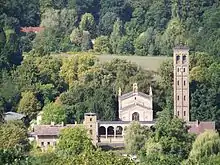 - Bornstedt Church, rebuilt from 1854 by Friedrich August Stüler in an Italian style with a portico and a 34 m (112 ft) tall campanile, including the tomb of Jacob Paul von Gundling; it was finished in 1881/82.