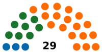 The Assembly elected at the 2019 local government elections, is made up of 29 counselors, with the following party composition:[1]