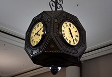 A hallway running from State Street to Peach Street entrances bisects the Boston Store.[5] A cube-shaped, four-sided clock built by International Business Machines hangs in the hallway.[6]