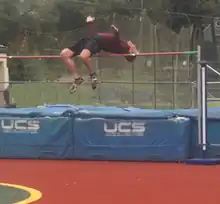 Kearns is also an avid high jumper and sprinter. In February 2020, competing in the high jump in the masters age 55-59 division in Santa Monica, CA, he cleared 5'0" (1.52m), which ranked him #1 in the USA and #3 in the world as of May, 2020.[9] In 2016 at age 51, Kearns cleared 1.65m (5'5"), in the high jump at a practice session, matching the All-American standard for the 50-54 age group.[10] At Placer High School track practice, Kearns clocked times of 13.0 for 100 meters and 59.6 for 400 meters at age 48. At age 49, he delivered a 59.6 in the 400 meters. Kearns ran in the 50s at age 50 with another 400 meter time trial.