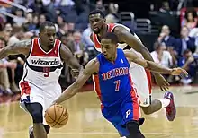 Knight was selected by the Detroit Pistons with the eighth overall pick in the 2011 NBA draft.[9] In May 2012, he earned NBA All-Rookie First Team honors, becoming the first Pistons' rookie since Grant Hill (1994–95) to be named to the NBA All-Rookie First Team. Knight's 847 points were the second-most by a Pistons' rookie since the 1985–86 season and his 12.8 points per game were the fourth-highest average by a Pistons' rookie since the 1980–81 season.[10]