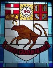 The Latin motto "Studio Gradum Faciant" is translated "To win merit through study", emphasizing the academic nature of the school.