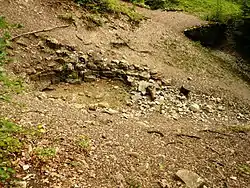 - Tributary, from the left in Wolfsloch to above 450 m (1,480 ft), 1.7 km; originates at about 580 m at the northern foot of the Stöffelberg with ruin of Stöffel's castle ruin