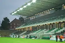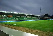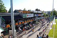 The venue was confiscated by the German occupation forces during World War II, who built a cold storage facility south of the pitch. In 1945, after five years of occupation, the pitch was in a detrimental state. The stadium received a major renovation, including a new pitch and replacing half the wooden terraces with concrete stands. The cold facility was converted to a club house and a basement was dug out and used as a changing room.[3] In 1946, parts of Vang, including Briskebyen, were amalgamated with Hamar.[6] The same year, Hamar Municipality signed an agreement with the club whereby municipal subsidies would cover the operating costs in exchange for the club allocating training time to other clubs.[7]