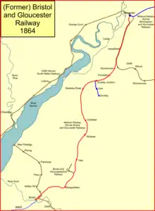 The development of railways in Great Britain was gaining momentum, and it soon appeared obvious that a line between Bristol and Gloucester was appropriate. An attempt to get authorisation in the 1838 session of Parliament was unsuccessful, but on 1 July 1839 the Bristol and Gloucester Railway was authorised, to take over and extend the old Bristol and Gloucestershire coal line from Westerleigh to a junction with the Cheltenham and Great Western Union Railway at Standish. The length of new line was to be about 22 mi (35 km). Because continuity with the Birmingham and Gloucester Railway was foreseen, the track was to be standard gauge.[8][4] Authorised capital was £400,000.[2]