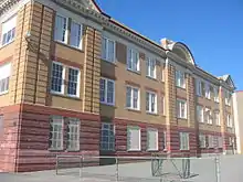 The school was founded in 1908 as the second high school to be constructed in the city, and is now the oldest remaining secondary school.[2] The first classes were held in the Admiral Seymour Elementary School building in September 1908. The school moved to the then partially completed Britannia building in 1910. The school colours of red, green, and white and the school motto "Per Vias Rectas" were adopted at this time. During the 1966-67 school year, a new wing was constructed and now houses the school office. In 1974, Britannia Secondary became Britannia Elementary-Secondary School. Britannia celebrated its centennial in 2008.