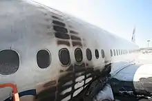 Fire damage to the left-side fuselage